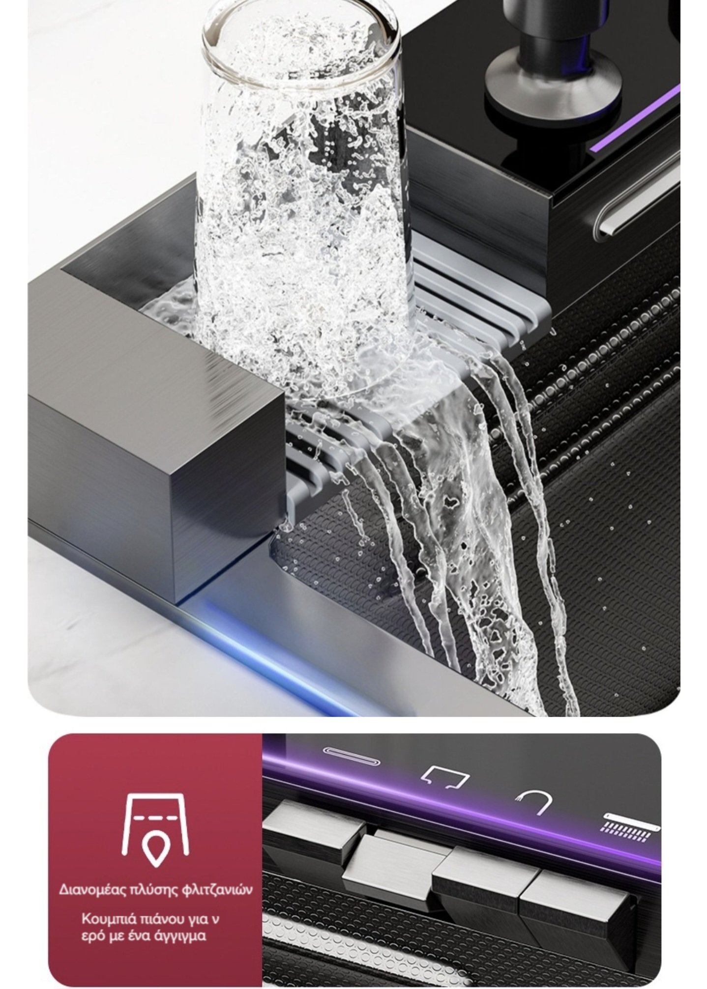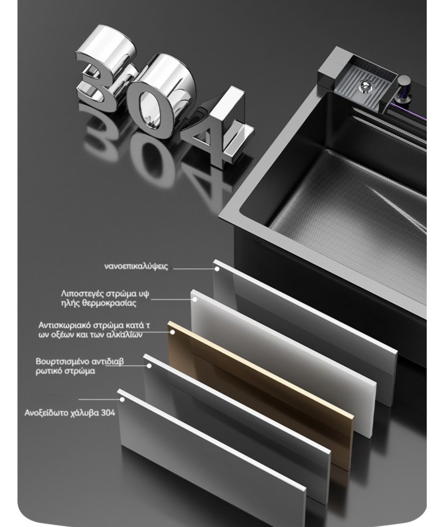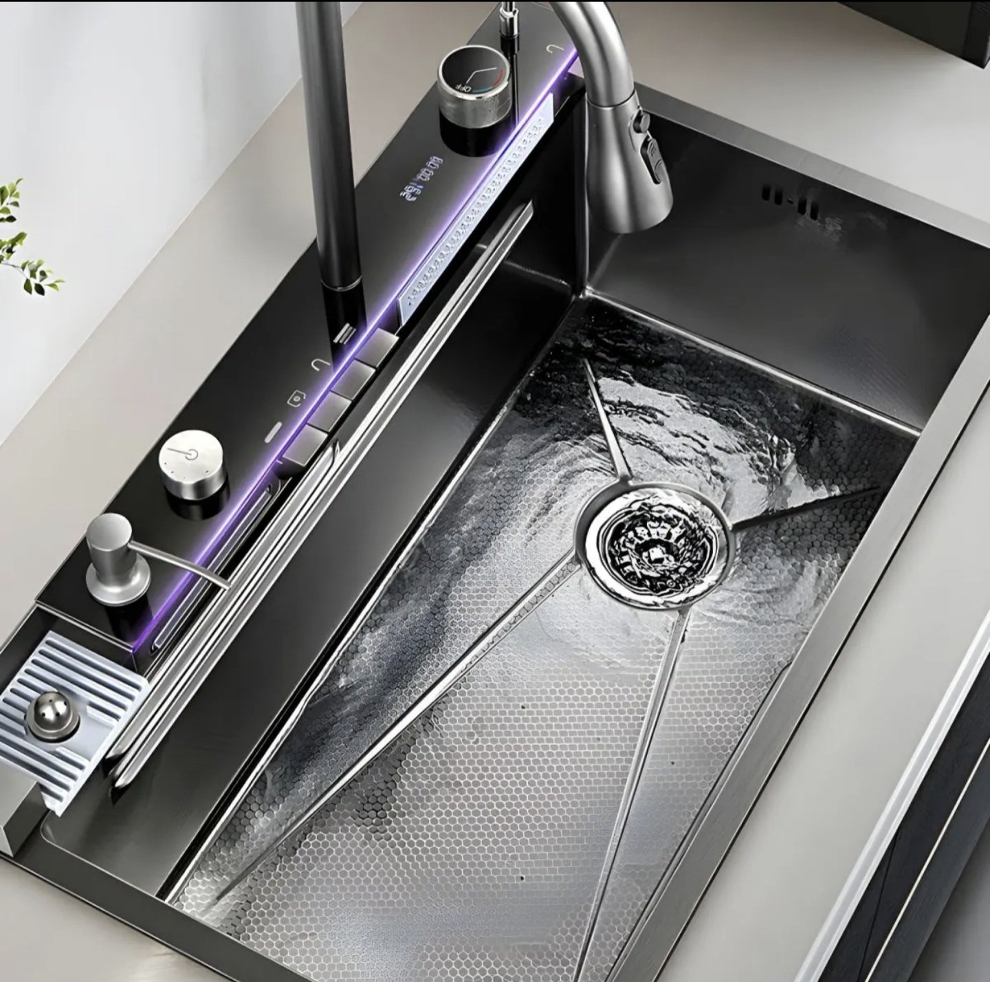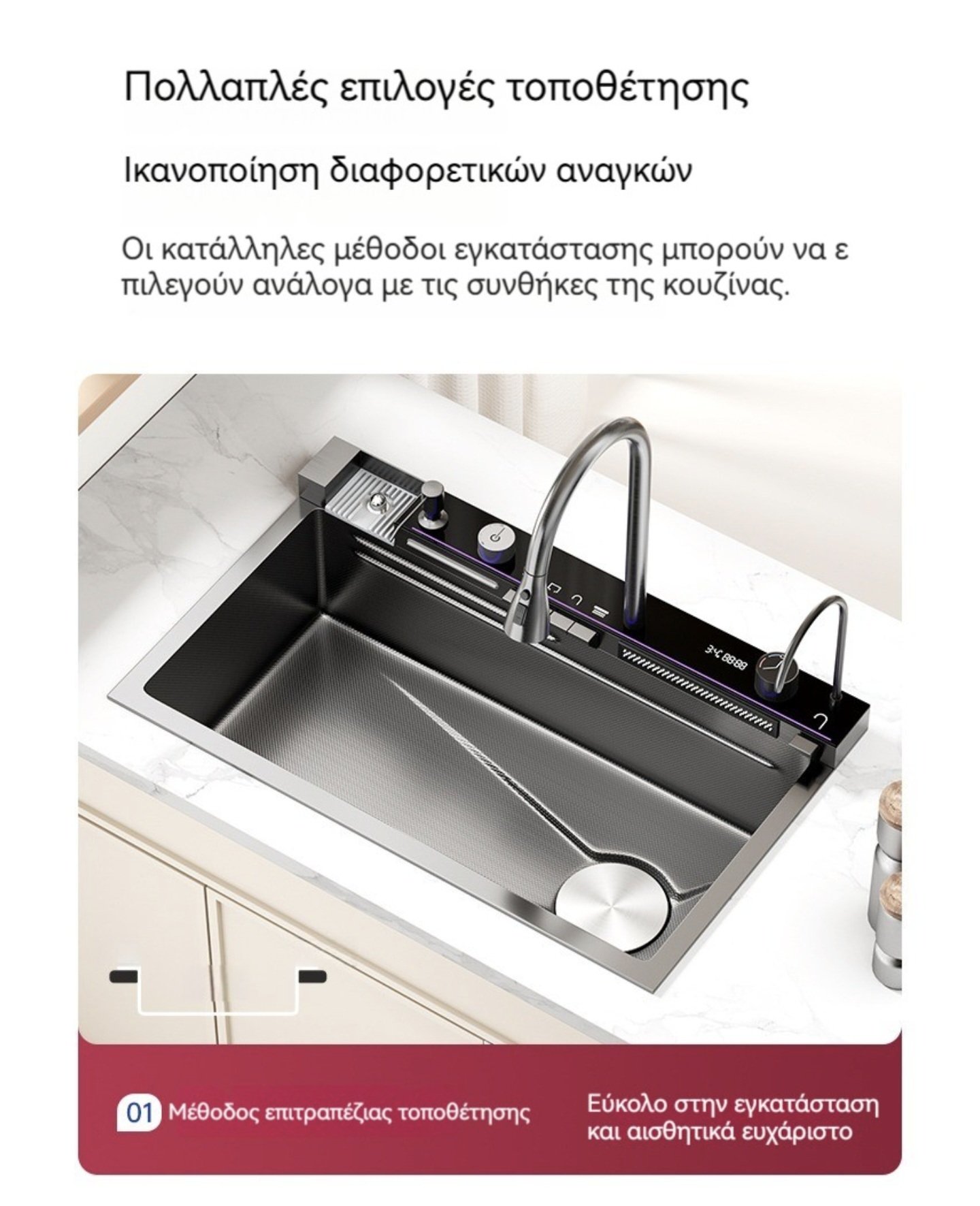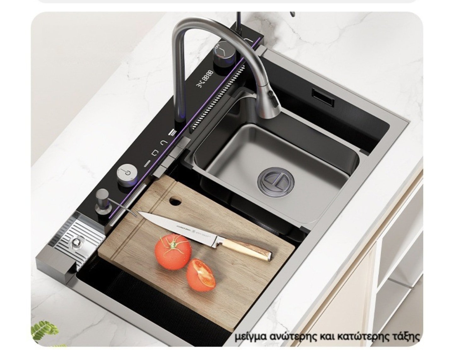 Σχεδιασμένος για τους λάτρεις της τελειότητας, ο έξυπνος νεροχύτης κουζίνας συνδυάζει την κομψότητα του σύγχρονου design με την καινοτομία της τεχνολογίας. Κατασκευασμένος από ανοξείδωτο ατσάλι κορυφαίας ποιότητας, με πολυτελές ματ φινίρισμα και προηγμένο ψηφιακό πίνακα ελέγχου, προσφέρει μοναδική εμπειρία χρήσης και υψηλό επίπεδο άνεσης.