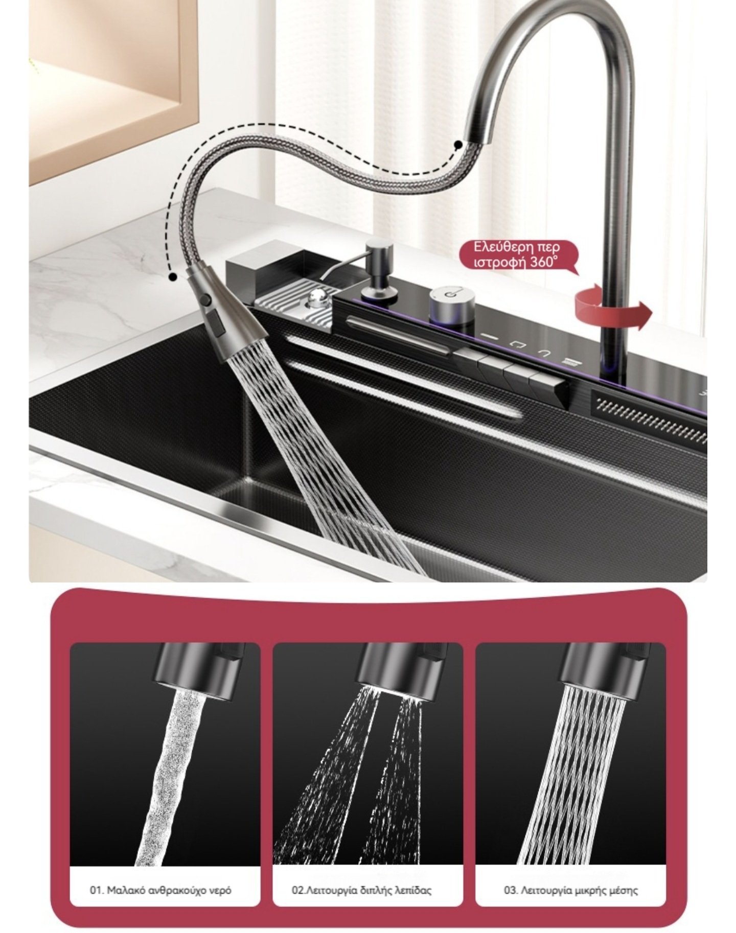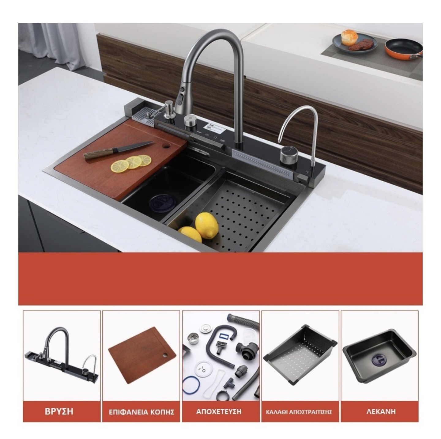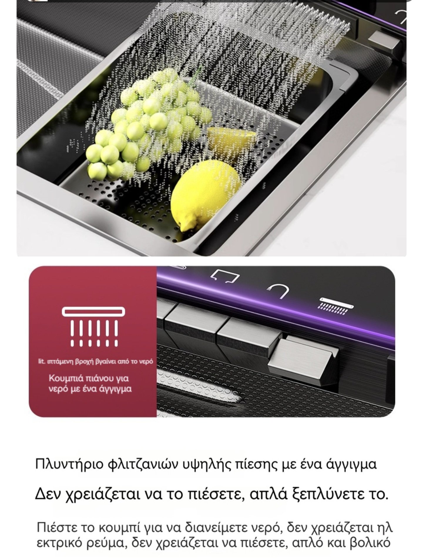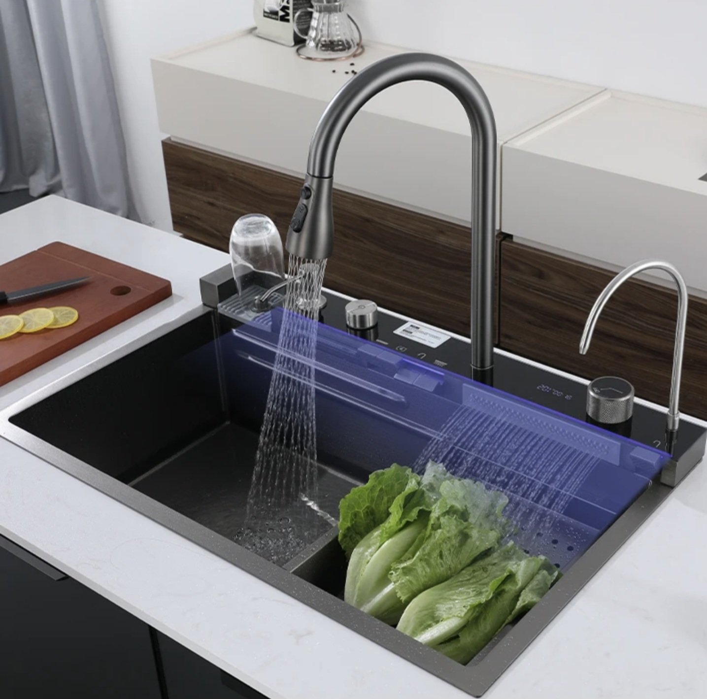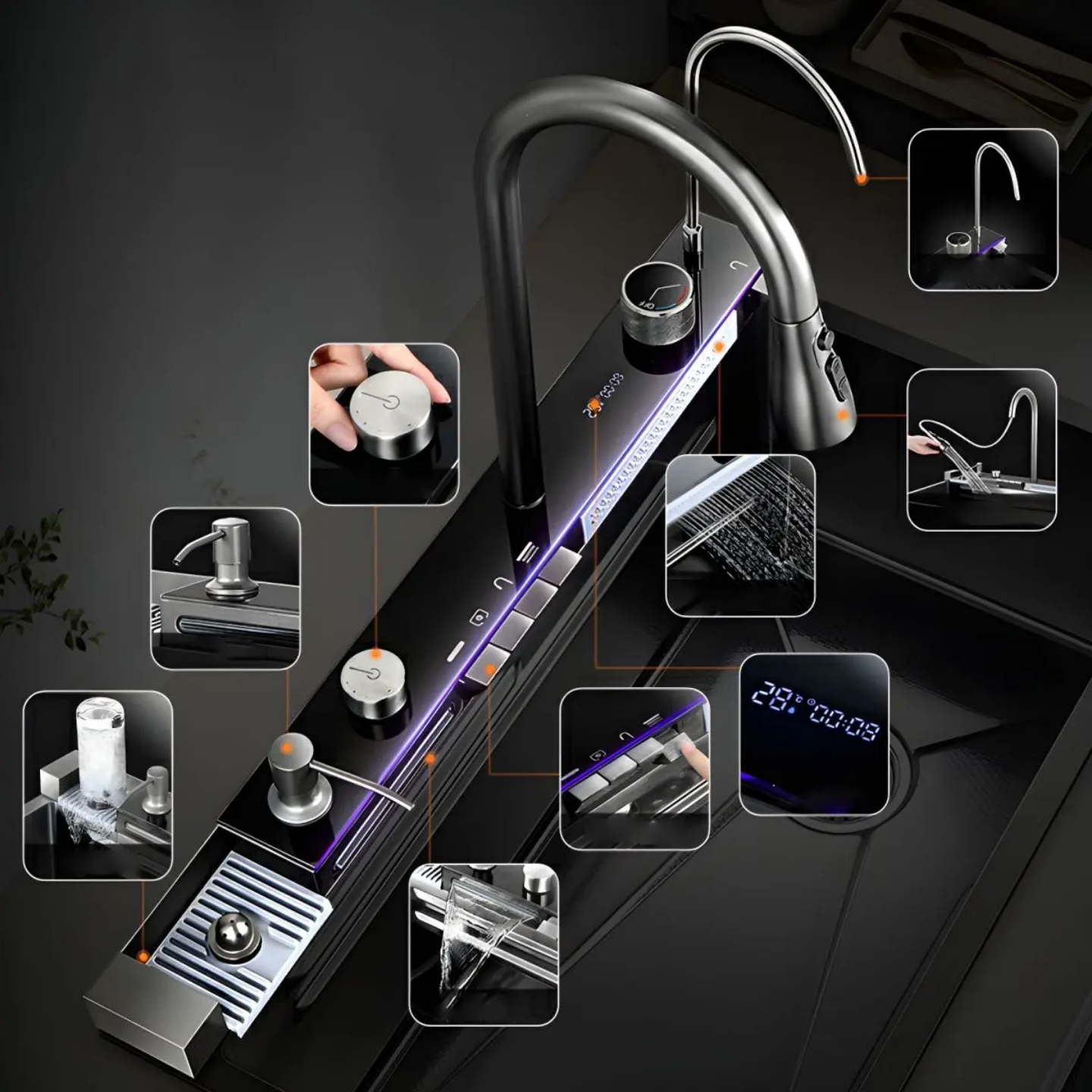 Σχεδιασμένος για τους λάτρεις της τελειότητας, ο έξυπνος νεροχύτης κουζίνας συνδυάζει την κομψότητα του σύγχρονου design με την καινοτομία της τεχνολογίας. Κατασκευασμένος από ανοξείδωτο ατσάλι κορυφαίας ποιότητας, με πολυτελές ματ φινίρισμα και προηγμένο ψηφιακό πίνακα ελέγχου, προσφέρει μοναδική εμπειρία χρήσης και υψηλό επίπεδο άνεσης.